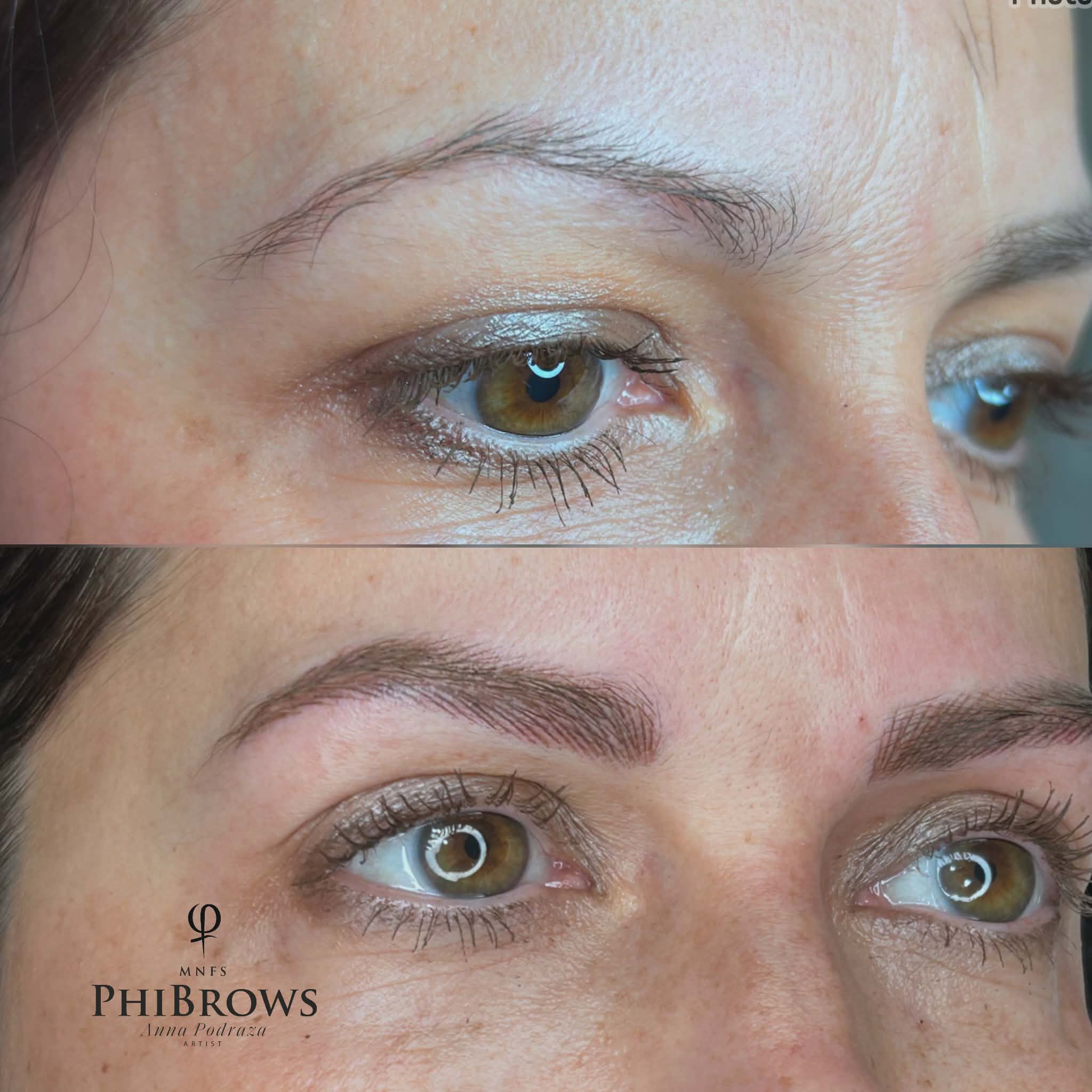 Microblading jest bardzo naturalnie wyglądającym makijażem permanentnym. Każda klientka uzyskuje inny efekt ze względu na kolor własnych włosków, odcień karnacji, preferowany kształt brwi. Ponieważ brwi są indywidualnym rysunkiem, nie oczekuj efektu kopiuj-wklej na każdym obliczu. Brwi będą symetryczne, natomiast niewielkie różnice w rysunku włosa występują prawie zawsze. Jeżeli zależy Ci na jednolitym kolorze na całej brwi, i pigmentacji pod linijkę co do milimetra – microblading nie jest dla Ciebie – umów pigmentację brwi metodą powder brows.